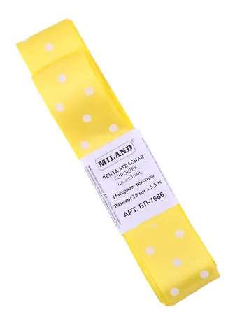 Лента атласная Горошек,25 мм х 5,5 м,желтый БЛ-7686