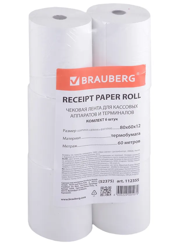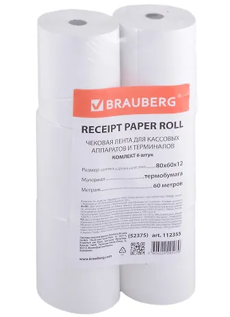 Лента чековая 06шт 80*62*60м, втулка 12мм, термо