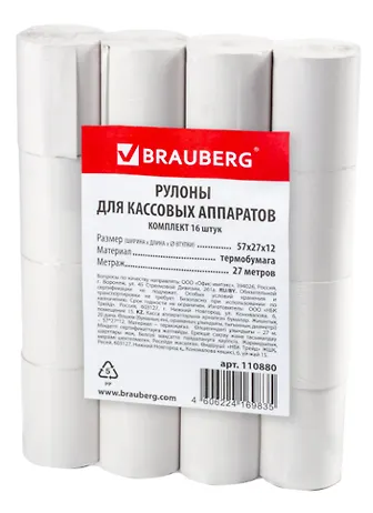 Лента чековая 16шт 57*43*27м, втулка 12мм, термо