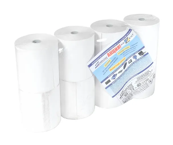 Чековая лента изготовлена из термобумаги. Бумажное полотно с наружным термослоем имеет ширину 80 мм и общую длину 91 метр. Диаметр намотки — 80 мм, диаметр втулки — 12 мм. Поставляются в термоусадочной пленке и гофрокоробах. Ролики для термопечати используются в кассовых аппаратах и калькуляторах со встроенным или внешним термопринтером.