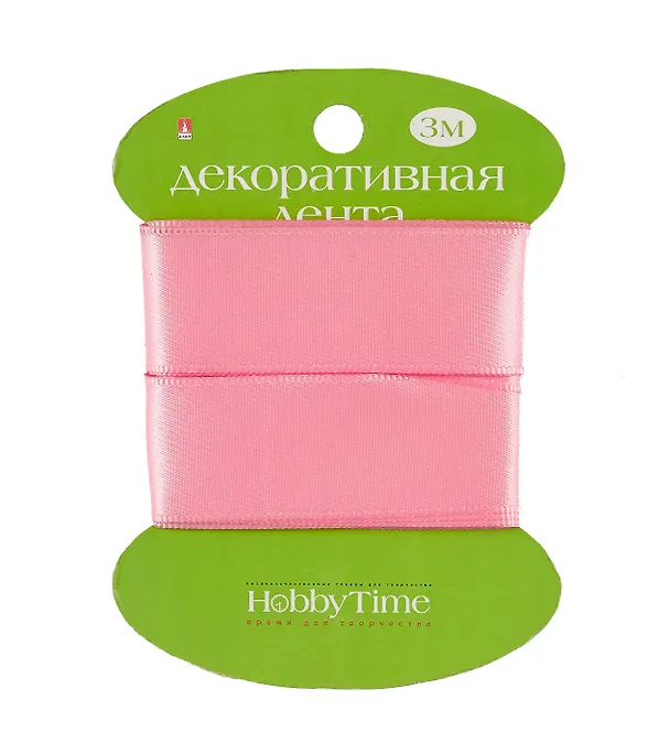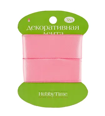 Лента декоративная атласная, 25мм*3м., РОЗОВАЯ 2-616/13