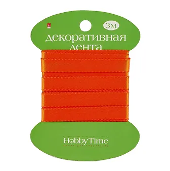 Лента декоративная атласная, 9мм*3м., ОРАНЖЕВАЯ 2-614/04