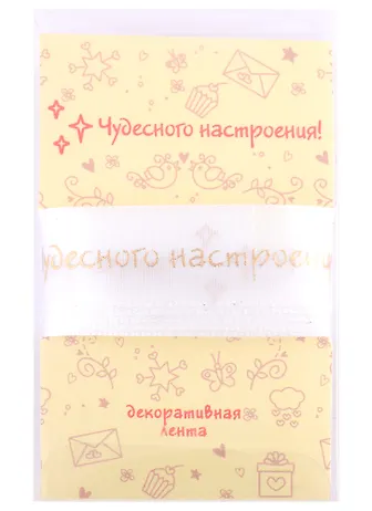 Лента для упаковки "Чудесного настроения!" белая (2м
