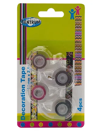Лента клейкая декоративная 12мм*2.8м Centrum Набор 4 ролика в упаковке в асс.