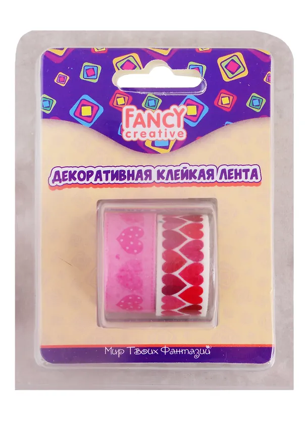 Лента клейкая декоративная Сердечки, бумага, 15мм x 1,5м x 2 шт., блистер