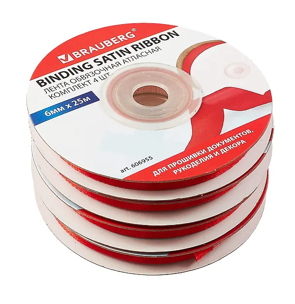 Лента обвязочная атласная красная комплект 4 шт., ширина 6 мм, длина 25 м, BRAUBERG