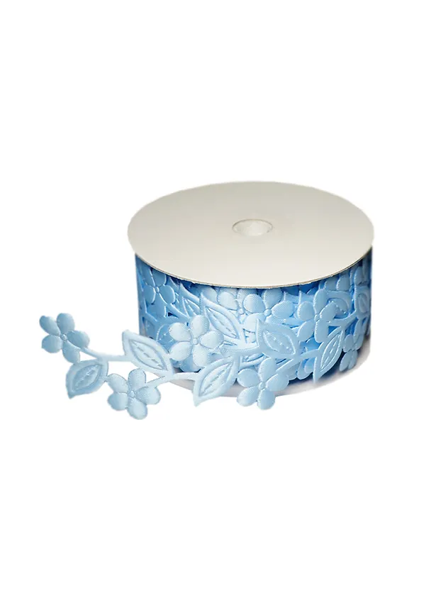 Лента тканевая букет цветов голубая (3,5 см х 10 ярдов) (149168) (упаковка)