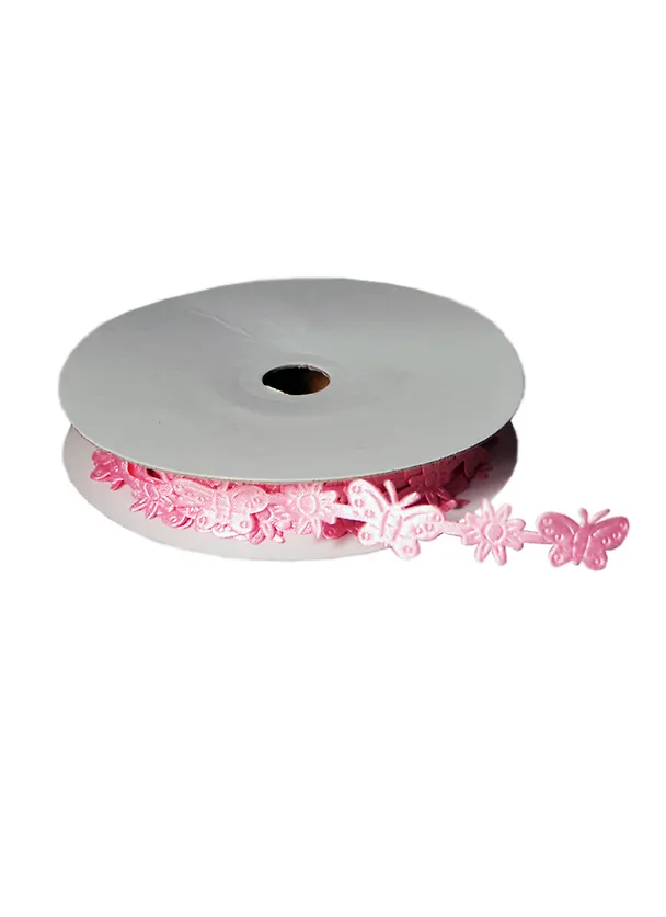 Лента тканевая из бабочек розовая (1,5 см х 10 ярдов) (149187) (упаковка)