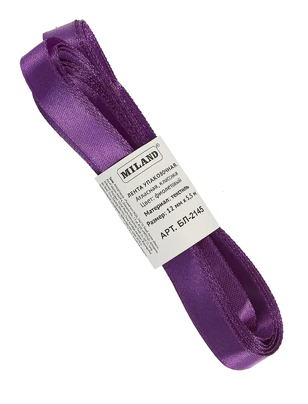 Лента упаковочная атласная Классика, 12 мм х 5,5 м,фиолетовый