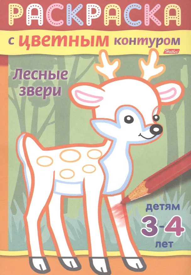 Лесные звери. Раскраска с цветным контуром. Детям 3-4 лет