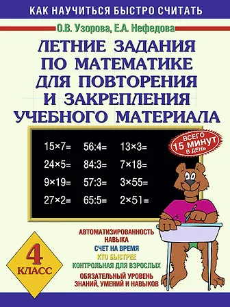 Ольга Узорова «Летние задания по математике для повторения и закрепеления учебного материала: 4 класс. Как научиться быстро считать» и выбрать удобный способ его получения: самовывоз, доставка курьером