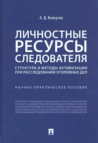 В пособии на основе анализа специальной научной литературы и деятельности следователя по расследованию преступлений представлен системный подход к проблеме активизации психологических ресурсов, изучено применение ресурсного подхода к повышению эффективности профессионала, осуществляющего названную деятельность. Сформулирована общая модель активизации психологических ресурсов в заданных условиях, описаны диспозиционные и ситуационные психологические ресурсы следователя.