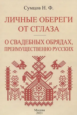 Сумцов Николай Федорович (1854–1922), фольклорист и этнограф. Автор около 300 исследований, научных и публицистических статей и заметок, монографий по истории литературы и искусства. Личные обереги от сглаза (первое издание в 1896 г.). Оглавление: Слизыванье и сплёвыванье; Верёвка от повешенного. Могильная земля; Рога. Камни; Соль; Огонь, угольки и зола; Сеть; Обувь: лапти; Бубенчики и колокольчики; Подкова; Цветные повязки; Детская сорочка; Волчьи зубы и летучие мыши; Деревья. Травы. Веник; Филактерии, лигатуры или наузы; Сложные обереги; Символические знаки (пальцы, глаза, фаллос, ключ); Передача сглаза. Вторая книга: О свадебных обрядах, преимущественно русских (первое издание в 1881 г.)