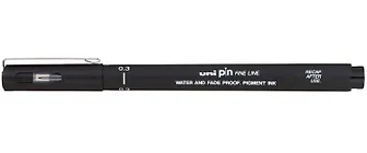 В отличии от аналогов, чернила uni pin имеют в своем составе более насыщенный пигмент, который делает черный еще более черным.