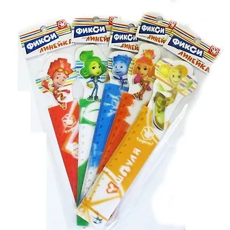 Линейка пятнадцать сантиметров с изображением героев из мультфильма фиксики, мне пришла зеленого цвета, линейка немного переливается и блестит на свету, также мне понравился дизайн и качество товара.