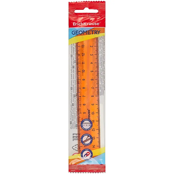 Взяла на смену своей старенькой видавшей виды линейки от Centrum. Успела к ней привыкнуть, поэтому искала похожую. Эта от Erich Krause практически не отличается от нее по виду, тот же размер (15см, на мой взгляд, самая удобная), полупрозрачная (люблю, чтоб было видно клетки тетради, это исключает ошибки при начертании), шкала с двух сторон (это не обязательно, но удобно, не приходится вертеть линейку, как в случае с одной). Шкала четкая! Пластик крепкий. В общем, полное попадание в мои требования.