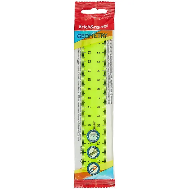 Линейка размером 15 сантиметров зеленого неонового цвета очень стильно красиво выглядит, приятный внешний вид привлек внимание, поэтому купили данную линейку для уроков геометрии и алгебры, длина 15 см очень удобная, легко вмещается в пенал, измерять или чертить этой линейкой получается достаточно легко, потому что она немного прозрачная, линейка отличная, рекомендую