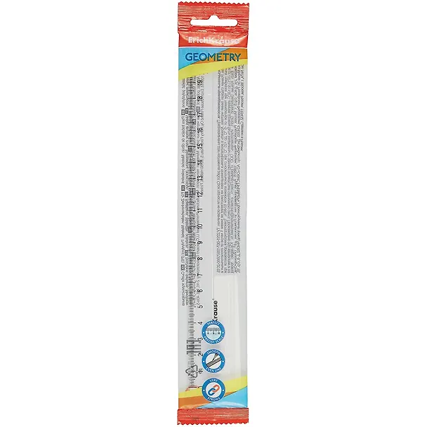 Линейка длинной 20 сантиметров, что является оптимальным размером, прозрачная и плотная. Выполнена очень аккуратно - края ровные, метки чётко проресованы, и что очень важно данные насечки не стираются со временем, поэтому линейка прослужит вам очень долго!
