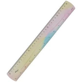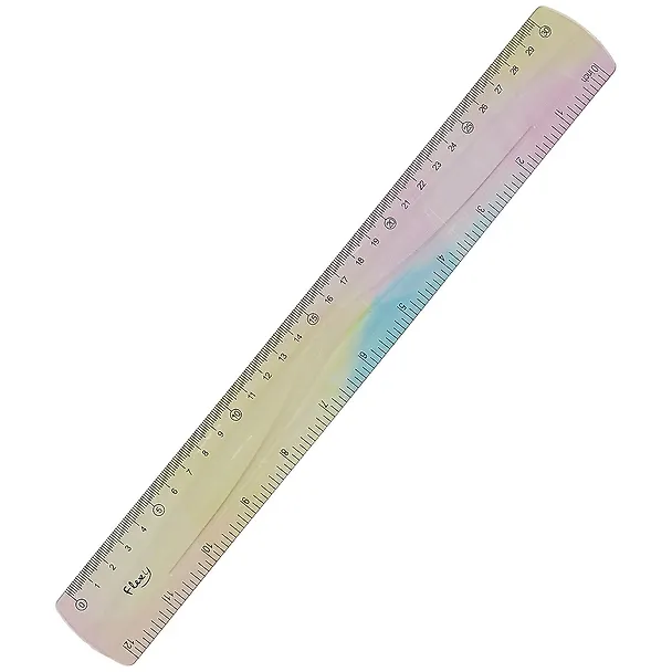 Сама линейка выполнена из приятного мягкого пластика, глянцевая с лицевой стороны и матовая с изнанки. Закругленные углы. Гнется, но быстро возвращается в исходное положение, без деформации.