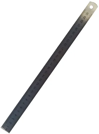 Прочная линейка из стали покрыта антикоррозийным слоем. Используется для выполнения чертежных работ. Продается в индивидуальной упаковке. Длина шкалы - 30 см.