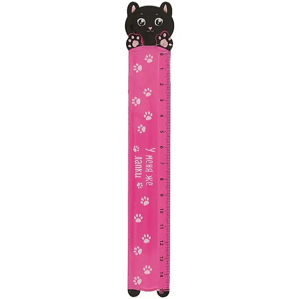 Линейка с очень милым дизайном, в виде котика, она яркая и необычная. Эта линейка прочная, она сделана из плотного пластика, долго прослужит при аккуратном пользовании. Из недостатков отмечу появление царапин на поверхности. Линейка очень удобная, она оптимального размера, помещается в небольшой пенал. Эта линейка очень красивая, дочь с удовольствием пользуется.