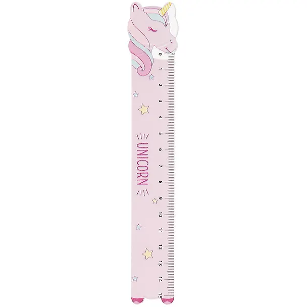 Линейка примерно 18 см, в мой пенал еле поместилась. Ношу её с собой в школу, мне нравится. К покупке советую тем, кто любит единорожек.
