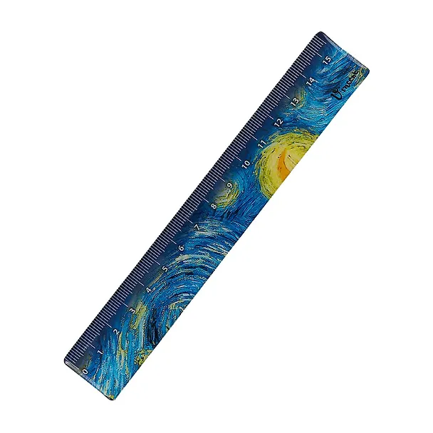 прекрасная и оригинальная линейка, радует мое сердечко. Принт стойки, пока не стерся. Никаких посторонних запахов. Шкала контрастно выделена на темном фоне. Компактная и стильная вещица. Приятно, когда такие прозаичные канцелярские товары выглядят как произведение искусства. Готова купить себе и на подарки знакомым еще шедевры мастеров на линейках. Ван Гог прекрасен.