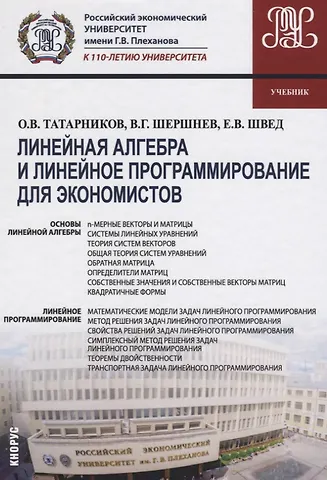 Учебник написан на основе лекций, читаемых авторами в Российском эко-номическом университете им. Г.В. Плеханова. Он содержит теоретический ма-териал по основам линейной алгебры и линейного программирования: n- мер-ные векторы и матрицы, системы линейных уравнений, системы векторов, оп-ределители матриц, собственные значения и собственные векторы матриц, квадратичные формы, методы решения задач линейного программирования. В конце каждого раздела приводятся характерные примеры, снабженные ответа-ми.Разделы математики, представленные в учебнике, относится к базовой части дисциплин математического цикла. В результате их изучения у студента должны быть сформированы компетенции, которые определены