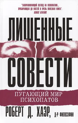 Лишенные совести, книга известного канадского психолога д-ра Роберта Д. Хаэра, посвящена психопатам — социальным хищникам, оставляющим после себя искалеченные судьбы и разбитые сердца. Автор исследует истоки феномена психопатии, факторы ее возникновения (наследственность и воспитание), предлагает практические советы по распознаванию психопатов и нейтрализации их воздействия. Книга обильно иллюстрирована примерами из клинической практики и , повседневной жизни.