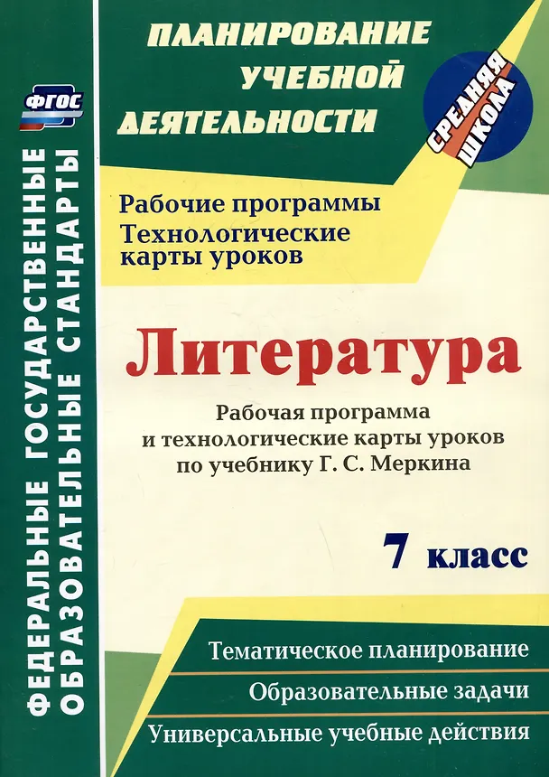 В пособии представлены рабочая программа и технологические карты уроков по литературе для 7 класса, разработанные в соответствии с ФГОС ООО с учетом планируемых результатов основного общего образования и ориентированные на работу с учебником Г. С. Меркина (М.: ООО "Русское слово - учебник").
