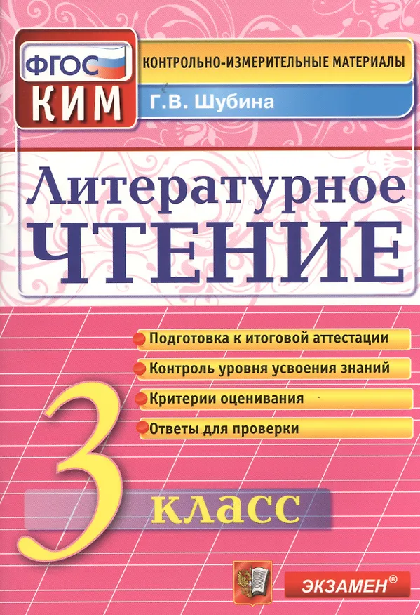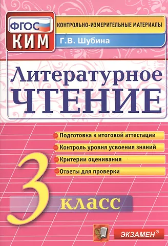 Галина Шубина «Литературное чтение: 3 класс: контрольно-измерительные материалы» и выбрать удобный способ его получения: самовывоз, доставка курьером