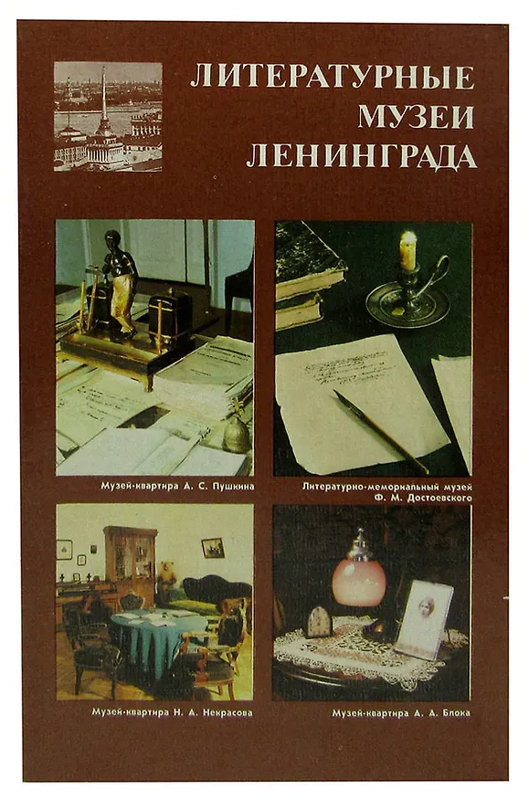 В проспекте рассказывается о музеях А.С.Пушкина на Мойке, Н.А.Некрасова на Литейном, Ф.М.Достоевского в Кузнечном переулке и А.А.Блока на ул.Декабристов. Проспект содержит краткие очерки о каждом из музеев.
