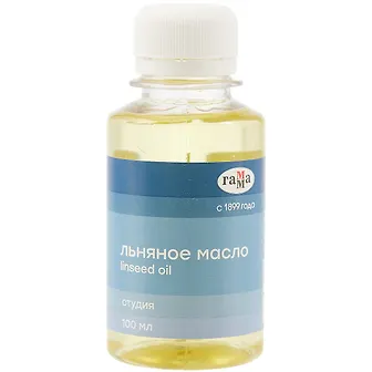 Льняное масло — самое доступное и подходящее для живописи масляными красками. Масло получают из семян льна способом холодного прессования, затем обрабатывают, чтобы удалить белковые вещества, слизь и другие включения. Его можно использовать 4 разными способами: 1. для разбавления масляных красок, чтобы увеличить прозрачность, текучесть и разносимость; 2. в качестве промежуточного слоя и межслойных лессировок — масло образует прочную нерастворимую пленку; 3. как основу для составных разбавителей; 4. для очищения кистей. Вводить масло в краски холодных оттенков нужно с осторожностью — со временем красочный слой может пожелтеть и прожухнуть. Не следует вводить масло в подмале
