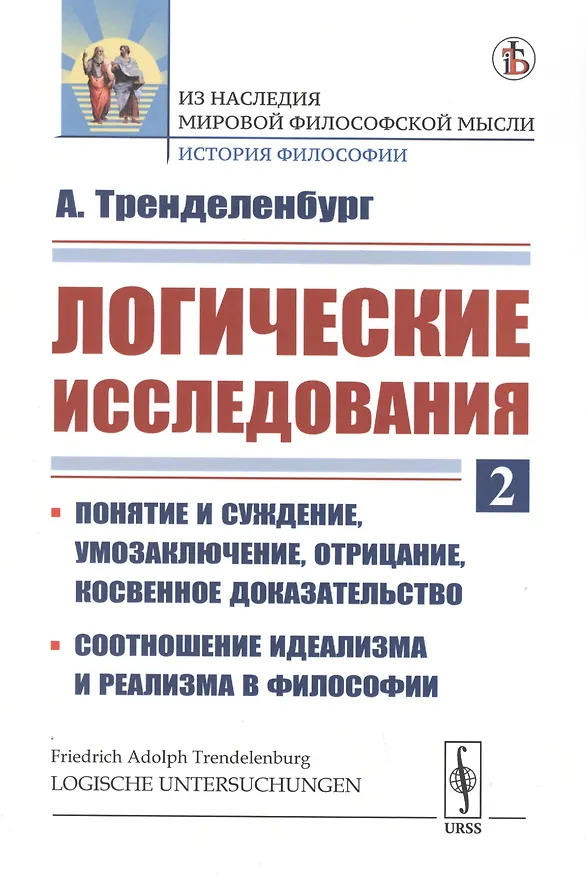 Вниманию читателей предлагается один из главных трудов известного немецкого философа и логика А. Тренделенбурга (1802-1872), в котором излагается его философская система, ценная преимущественно своей критикой умозрительного метода. Утверждая, что философские проблемы возникают на почве опыта, автор показывает, что именно размышление над тем, что дано в эмпирическом познании, ведет к философии. В книге приводятся исследования, охватывающие весь круг логических вопросов, с помощью которых автор затем пытается дать целостный обзор науки философии. В настоящем издании, представляющем собой вторую часть книги, рассматриваются такие категории, как понятие и суждение, умозаключение, отрицание, косв