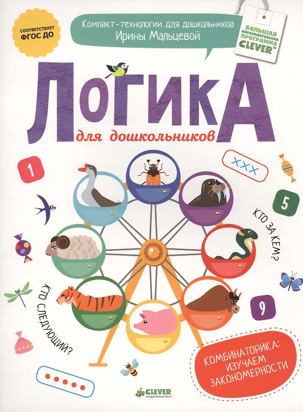Ирина Владимировна Мальцева — опытный педагог-психолог и известный методист, много лет занимается разработкой образовательных программ. Её новейшая разработка – компакт-технология «Первое чтение». ЧТО ТАКОЕ КОМПАКТ-ТЕХНОЛОГИЯ ДЛЯ ДОШКОЛЬНИКОВ? Это уникальная методика, предназначенная для эффективного обучения ребёнка чтению, ориентированная на ФГОС ДО, и успешно прошедшая апробацию в детских садах. В рамках этой методики создана серия обучающих пособий. «Логика для дошкольников» — одно из них. ДЛЯ ЧЕГО НУЖНА "ЛОГИКА ДЛЯ ДОШКОЛЬНИКОВ»? Для того, чтобы научить ребёнка быстро и с удовольствием: рассуждать логически, анализировать, сравнивать, комбинировать, составлять ряды, познавать мир. КАК Э