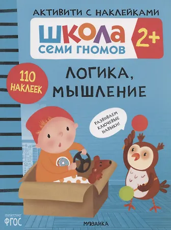 Книга «Логика, мышление 2+» из серии «Школа Семи Гномов. Активити с наклейками» предназначена для развития и тренировки логического мышления детей от 2 до 3 лет.
