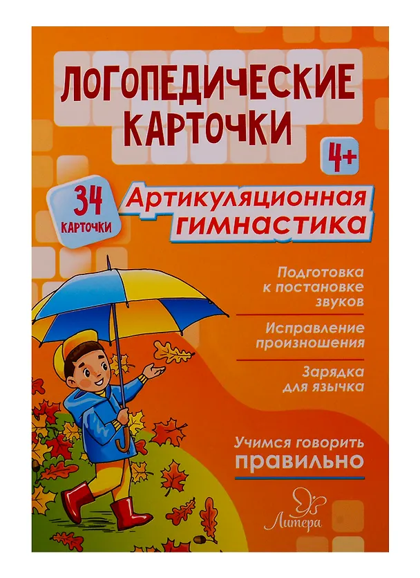 Трудно представить логопедические занятия без артикуляционной гимнастики. И овладеть ею должен не только ребенок, посещающий логопеда, но и его родители. Логопед показывает логопедические упражнения и детям, и родителям. Родители осваивают упражнения и занимаются с детьми дома, выполняя задания логопеда...Логопедические карточки известных петербургских логопедов Татьяны Анатольевны Воробьёвой и Ольги Игоревны Крупенчук «Артикуляционная гимнастика» помогут логопедам и родителям разучить с детьми артикуляционную гимнастику – специальные упражнения для органов речи. Она необходима, чтобы подготовить артикуляционный аппарат как для постановки звуков, так и для исправления невер