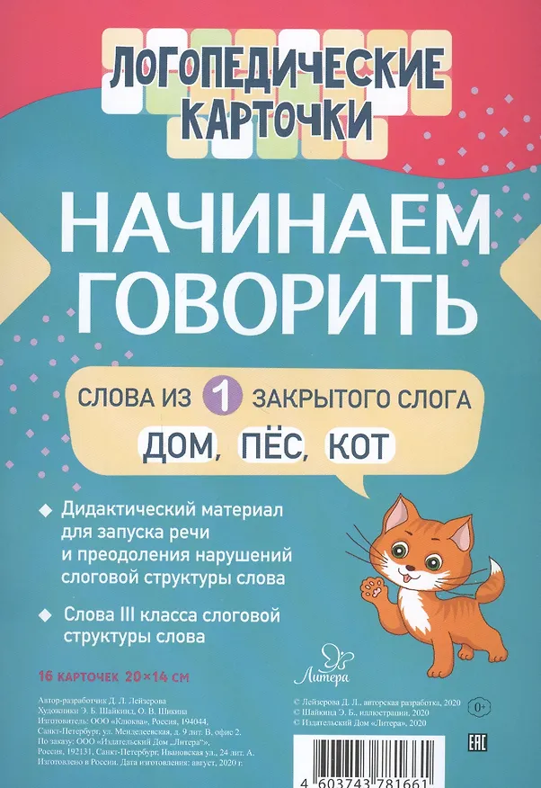 Логопедические карточки. Начинаем говорить. Слова из 1 открытых слогов. 16 карточек