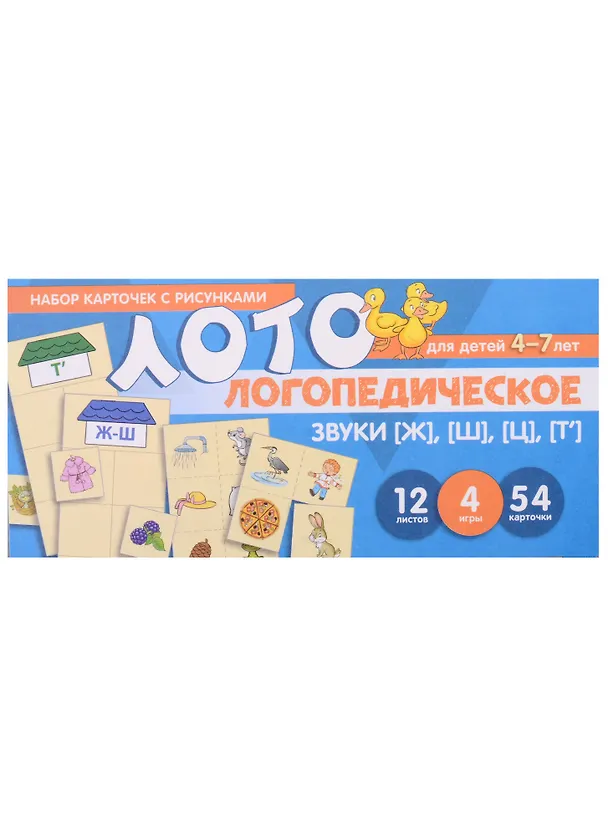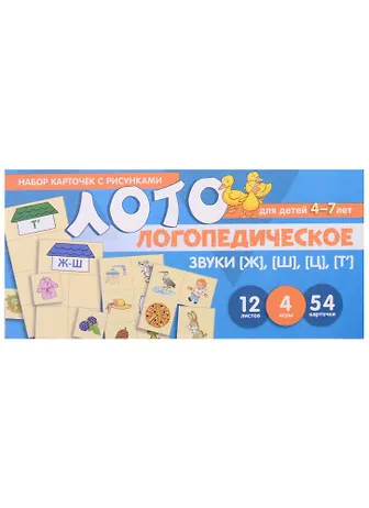 Логопедическое лото. Звуки [Ж], [Ш], [Ц], [Т]. Набор карточек с рисунками