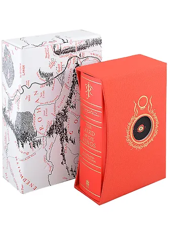 This one-volume deluxe slipcased edition contains the complete text, fully corrected and reset, which is printed in red and black and features, for the very first time, thirty colour illustrations, maps and sketches drawn by Tolkien himself as he composed this epic work. These include the pages from the Book of Mazarbul, marvellous facsimiles created by Tolkien to accompany the famous ‘Bridge of Khazad-dum’ chapter. Also appearing are two poster-size, fold-out maps revealing all the detail of Middle-earth.