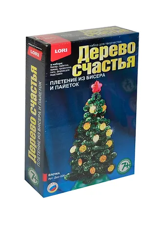 LORI Дер-006 Дерево счастья Плетение из бисера и пайеток Елочка (набор д/творчества) (7+) (коробка)