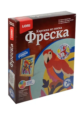 LORI Кп-034 Картина из песка Фреска Попугай ара (+рамка) (набор д/творч.) (7+) (коробка)