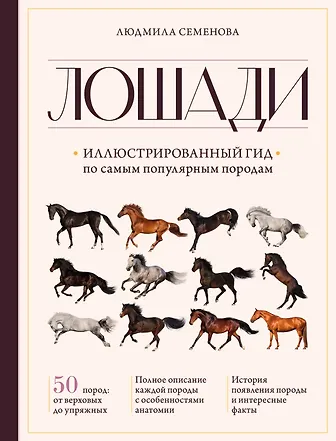 Замечательное издание, на которое стоит обратить внимание читателям, мне лично книга понравилась очень, актуальное и современное в подаче материала популярно и максимально познавательно, автор в своей книге дает исчерпывающие характеристики представленным в справочнике породам лошадей, и все это хорошо проиллюстрировано, единственное, что хотелось бы, чтобы фотографии представленных животных были побольше по размеру, ну это незначительное замечание. Издание довольно компактно, по конфигурации приближается к квадрату, достаточно большое по объему. Одним словом стоит приобрести. Я купила и не пожалела.