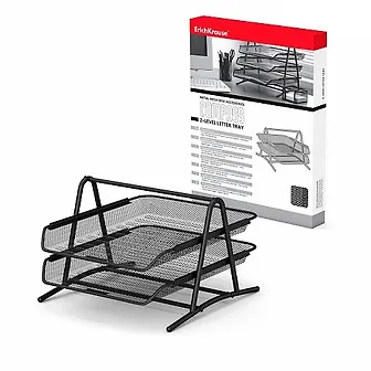 Лоток горизонтальный Erich Krause, сетчатый 2-х уровневый черный