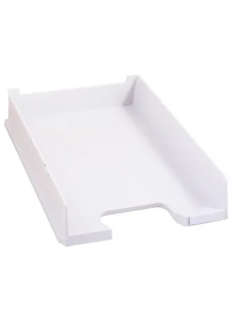 Лоток для бумаг штапелюющийся С4 (цвет –серый) Размеры внешние 254*346*65 мм Съёмное индексное окно, высококачественный антистатичный пластик. Возможность установки и фиксации любого количества лотков друг на друга, благодаря специальным направляющим.