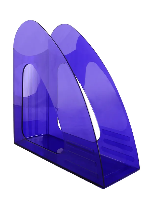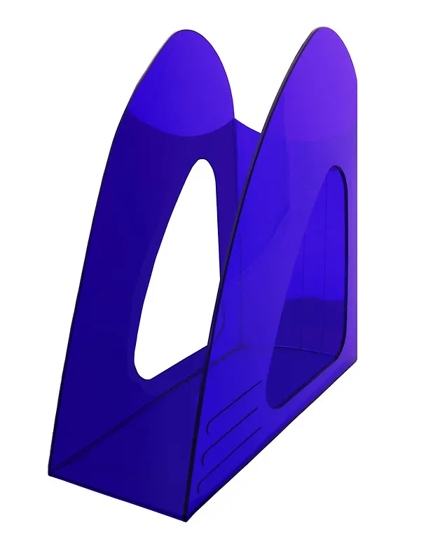 Очень нужная вещь на письменном столе, к тому же еще и стильная. Купили ребёнку -- теперь на столе порядок. Лоток широкий и довольно высокий: подошёл и для папок, и для журналов, и прочие бумажки поместились. Пластик яркий (у нас в заказе оказался фиолетовый), прозрачный, прочный, края закруглённые, без заусенец.