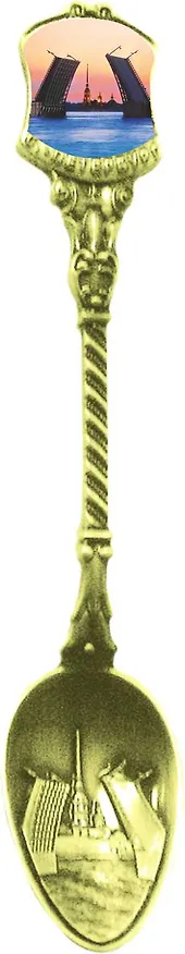 Сувенирная металлическая ложка с видами СПб - отличный и недорогой подарок , который Вы можете привезти из Санкт-Петербурга.