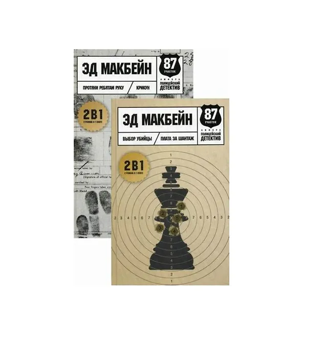 Комплект "Лучшие детективы мира" содержит книги:  "Выбор убийцы"  В это издание вошли романы "Выбор убийцы" и "Плата за шантаж", продолжающие серию историй о сыщиках из легендарного 87-го участка.  "Протяни ребятам руку"  В это издание вошли романы "Протяни ребятам руку" и "Крикун", продолжающие серию историй о сыщиках из легендарного 87-го участка.