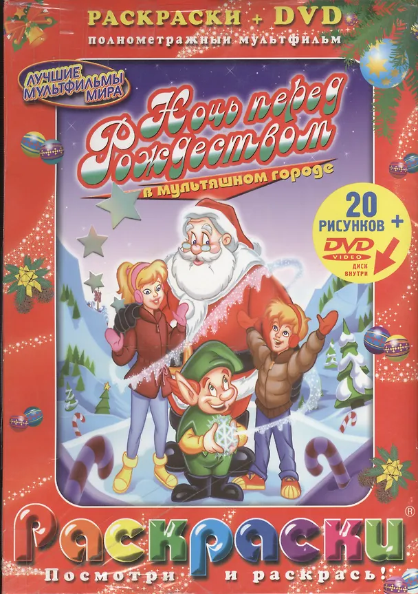 Лучшие мультфильмы мира Ночь перед Рождеством в мультяшном городе (раскраски + DVD) (DKV-078-07) (Посмотри и раскрась) (папка) (Классик Компани)