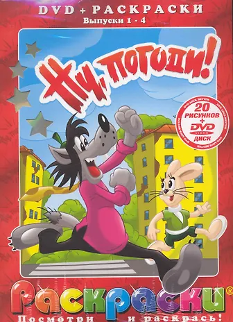 Лучшие мультфильмы мира Ну, погоди! Выпуски 1-4 / (раскраски + DVD) (DKV-006-10) (Посмотри и раскрась) (папка) (Классик Компани)